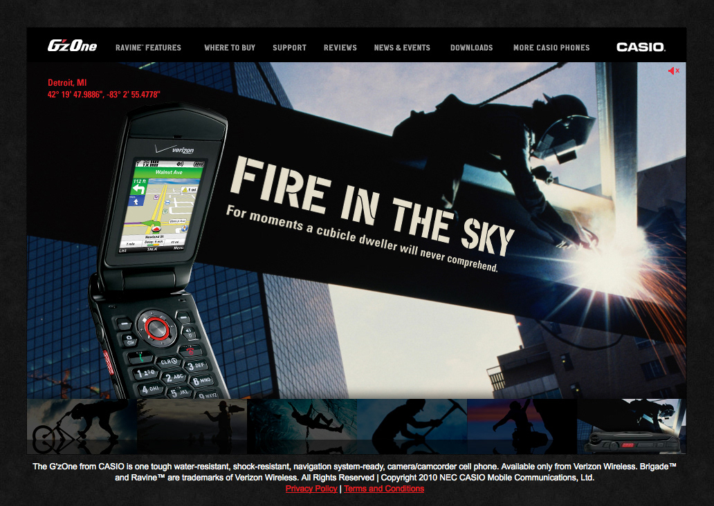 Casio G'zone tough phones serve one purpose, to keep up with your active lifestyle. We even made a guerrilla video to showcase that the phone really is tougher than you. 2012 l Silver ADDY l Interactive Media